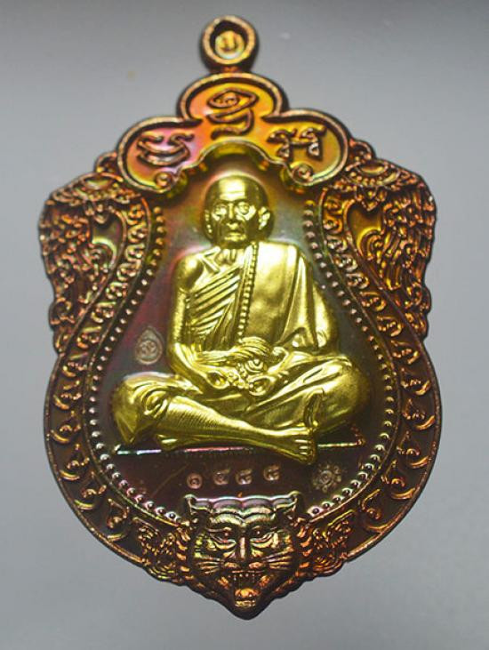 สร้างบูชาคุณ 2561 เหรียญเสมาหัวเสือ หลวงปู่หมุน วัดบ้านจาน หลวงปู่อุดมทรัพย์ ปลุกเสก เนื้อทองแดงมันปู หน้ากากทองฝาบาตร เลข 1488 |