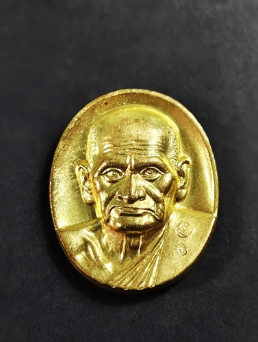 เหรียญเสมา หลวงปู่หมุน วัดบ้านจาน ศรีสะเกษ รุ่นมหาสมปรารถนา เนื้อทองแดง กรอบทองคำพร้อมบูชาขึ้นคอ |