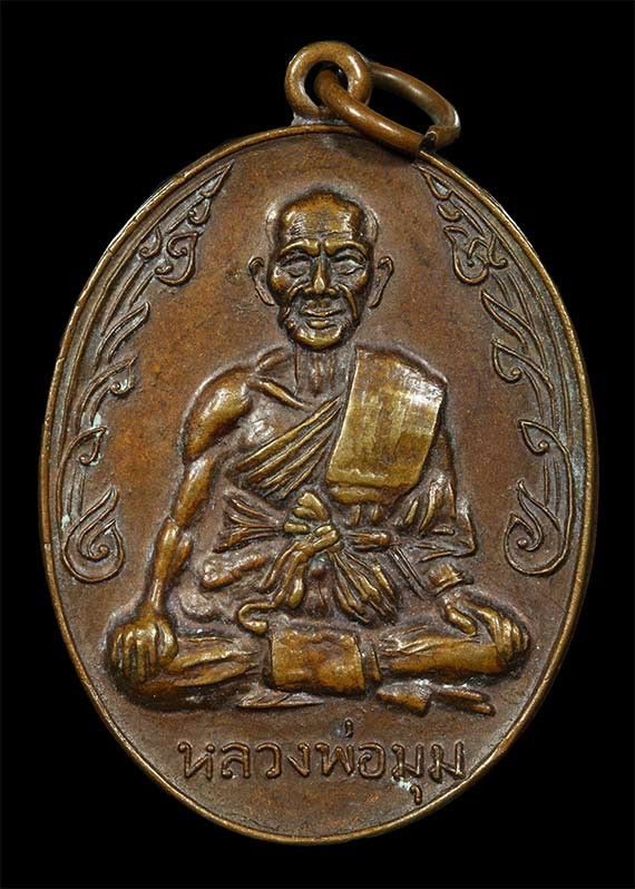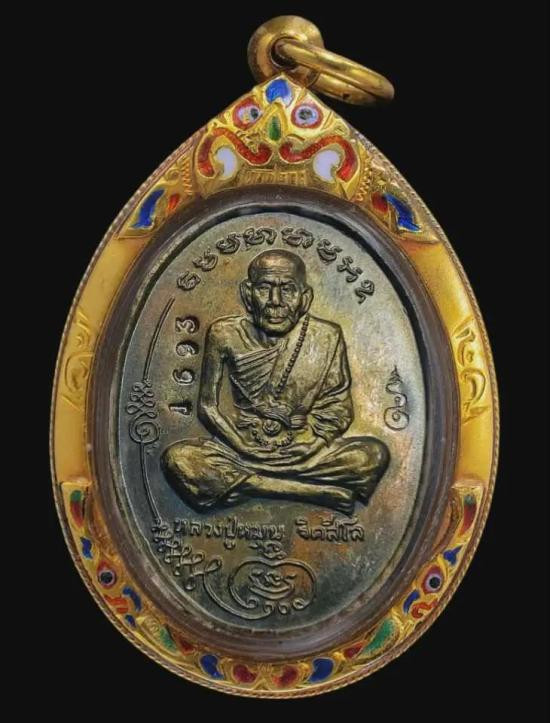 เหรียญมนต์พระกาฬ หลวงปู่หมุน วัดบ้านจาน เนื้อทองแดง ปี2543 เลี่ยมกรอบทอง (กรอบทองสั่งทำร้านจิบเซ่งเฮง ทำใหม่ชั่วโมงนี้น่าจะ 15,000+ครับ) |