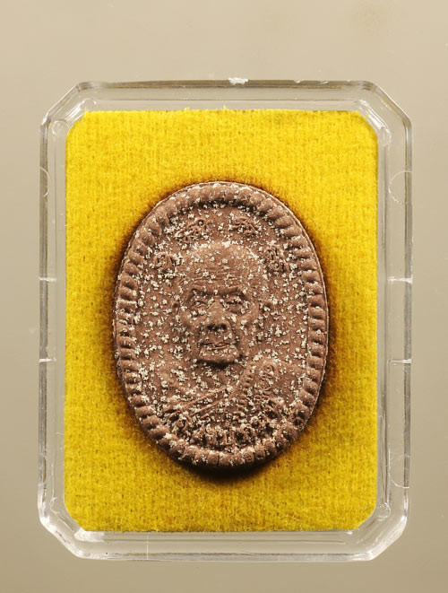 เหรียญเล็กหน้าใหญ่ หลวงปู่หมุน เนื้อทองแดง ปี2543 เหรียญนี้พิมพ์คมชัด ผิวสวยเดิม เลี่ยมกรอบทองสวยงามครับ |