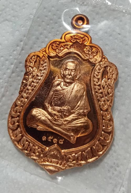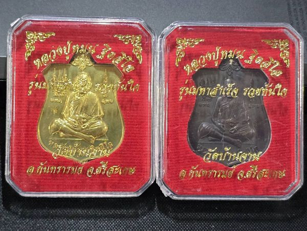เหรียญเสมา หลวงปู่หมุน วัดบ้านจาน ศรีสะเกษ รุ่นมหาสมปรารถนา เนื้อทองแดง กรอบทองคำพร้อมบูชาขึ้นคอ |