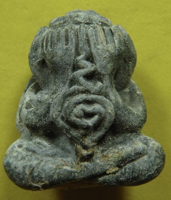 พระปิดตาวังหน้า วัดป่าสักภักดีภูริทัต หลวงปู่หมุนเป็นประธานพิธีปลุกเสก ปี 2543 หายาก1 ใน108 องค์ ( จุ่มรักดำเดิมๆ ในพิธีหายากกว่าปกติ ) |