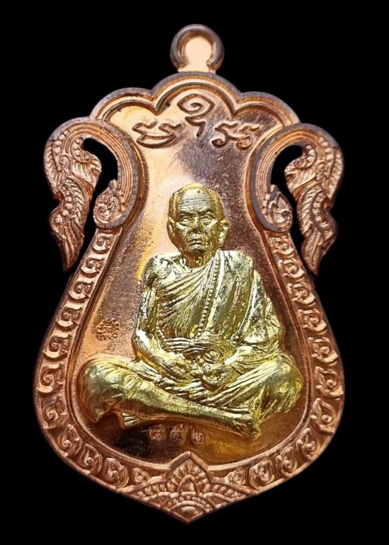 เหรียญเสมาฉลุหน้ากากทองฝาบาตรแจกทานในพิธีปี๖๑ ตอกโค๊ตตอกหมายเลข 852 วัดบ้านจานจังหวัดศรีสะเกษ หลวงปู่หมุน ฐิตสีโล จัดสร้างจำนวน 2,000 เหรียญ (2) |