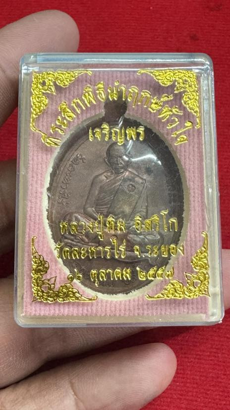 เหรียญเจริญพรบน หลวงปู่ทิม อิสริโก (ย้อนยุค57 รุ่นบรรจุหัวใจ) เนื้อทองแดง พร้อมกล่อง หมายเลข 29316 |