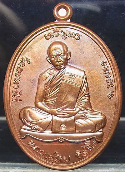 เหรียญเจริญพรบน หลวงปู่ทิม อิสริโก (ย้อนยุค57 รุ่นบรรจุหัวใจ) เนื้อทองแดง พร้อมกล่อง หมายเลข 8685 |