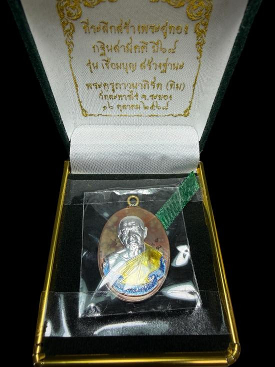 เหรียญห่วงเชื่อม68 เชื่อมบุญ สร้างฐานะ เนื้อชนวนมวลสารงานบุญหน้ากากเงิน ลงยาจีวรเหลือโบว์ฟ้า #เชื่อมห่วงทองคำ เลข64 แยก จากชุดเจ้าภาพหินอ่อน (สร้าง100เหรียญ) |
