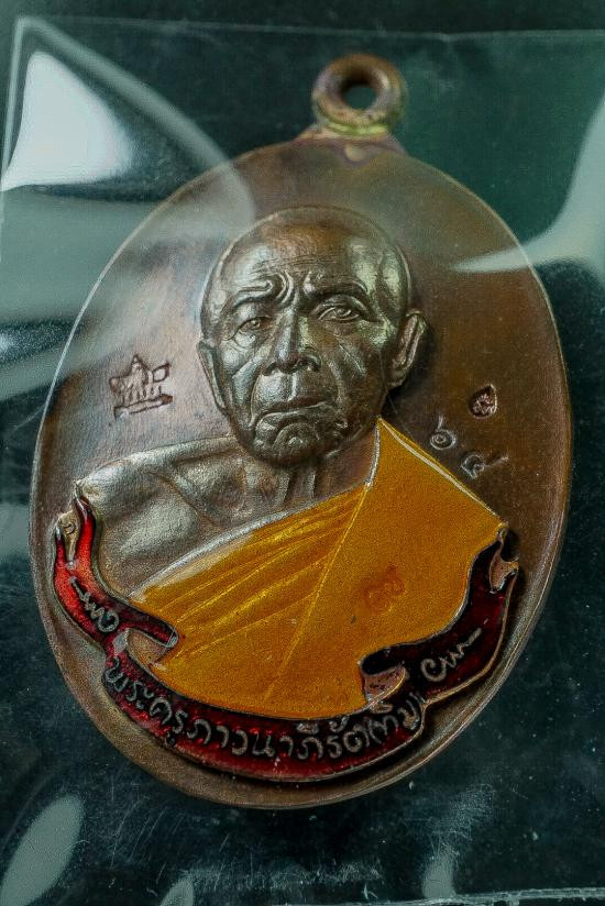 เหรียญห่วงเชื่อม68 เชื่อมบุญ สร้างฐานะ เนื้อทองแดงหน้ากากชนวน ลงยาจีวรเหลือโบว์แดง เลข64 แยก จากชุดเจ้าภาพหินอ่อน (สร้าง100เหรียญ) |