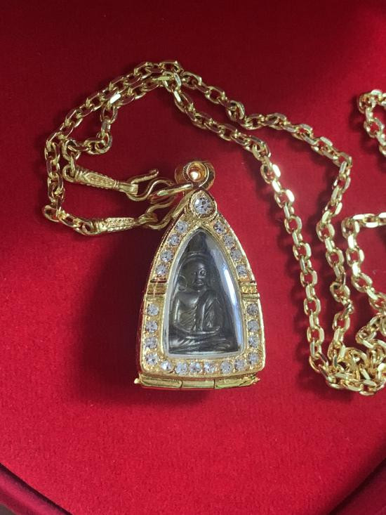 หลวงพ่อเงิน วัดบางคลาน รุ่นพิเศษ ยุคปลาย รวมตลับประดับพลอย สร้อยชุบทอง |