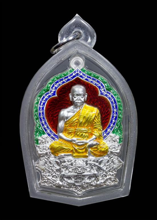 ออกวัด 2,500 เหรียญเสมาหน้าแซยิด หูเชื่อมโบราณ เจริญพร ลาภมาไม่ขาด หลวงพ่ออิฏฐ์ วัดจุฬามณี เนื้อเงินลงยาแดง ลงยาจีวร |