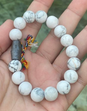 ข้อมือ หินมงคล ฮาวไลท์ Howlite + ลูกสะกด หลวงพ่ออิฏฐ์ วัดจุฬามณี จ.สมุทรสงคราม ( ป้องกันสิ่งไม่ดี + สติปัญญาดี + ขจัดความเครียด + มีโชคด้านการเสี่ยงโชค ) |