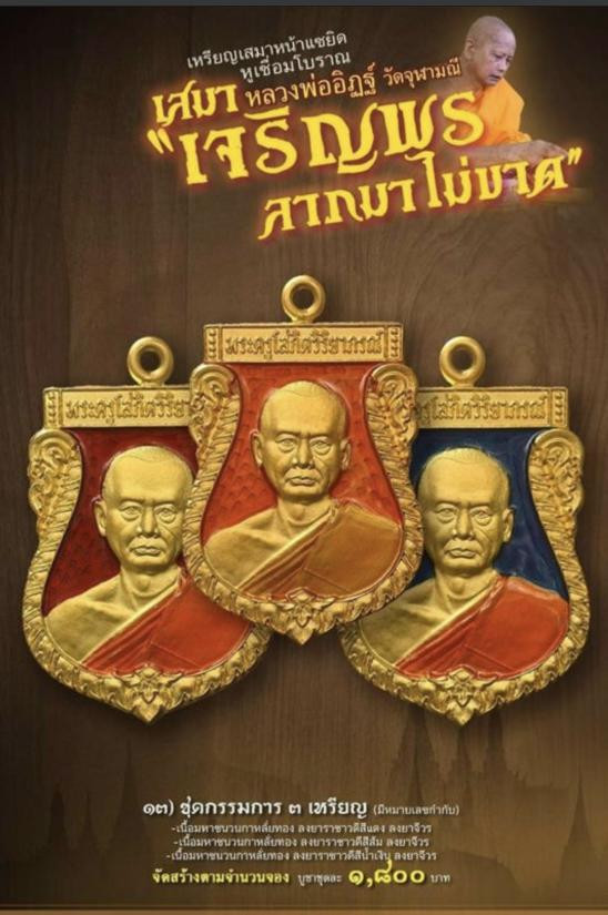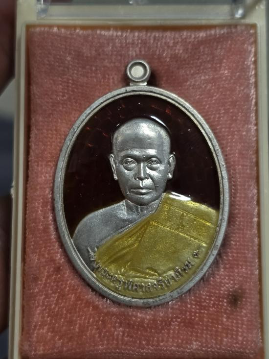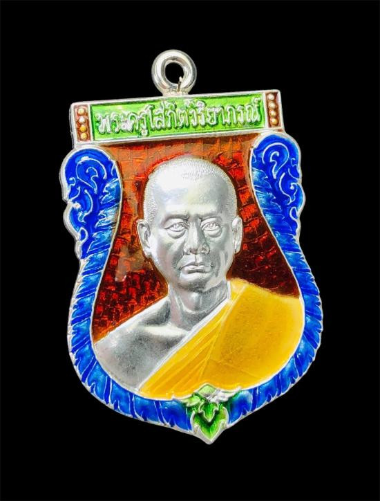 ออกวัด 2,500 เหรียญเสมาหน้าแซยิด หูเชื่อมโบราณ เจริญพร ลาภมาไม่ขาด หลวงพ่ออิฏฐ์ วัดจุฬามณี เนื้อเงินลงยาแดง ลงยาจีวร |