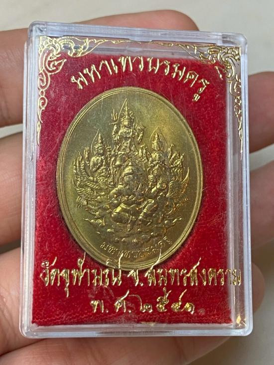 เหรียญท้าวเวสสุวรรณโณ จตุมหาราชิกา พิมพ์ทรงจำปี 3 เทพ (สามเทพ) รุ่น 1 มีแล้วไม่จน หลวงพ่ออิฐ วัดจุฬามณี เนื้อทองทิพย์เลข2948 ปี 2564 |