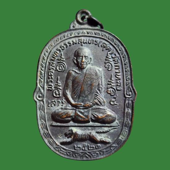 เหรียญหลวงพ่อสุด วัดกาหลง รุ่นเสือคำราม เนื้อทองแดง ปี 2520 จ.สมุทรสาคร (โค้ดดอกจัน) พร้อมบัตรรับรองสถาบันการันตีพระ |