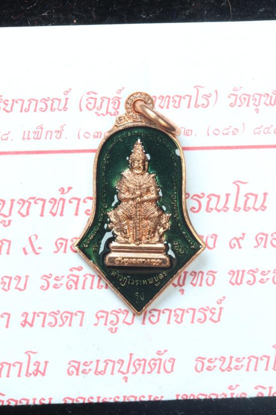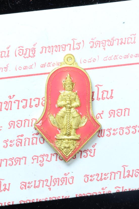 -วัดใจเคาะเดียวแดง-เหรียญท้าวเวสสุวรรณโณ พิมพ์ลูกท้อขึ้นเหนือ หลวงพ่ออิฏฐ์ วัดจุฬามณี ปี 62 เนื้อรมซาติน |