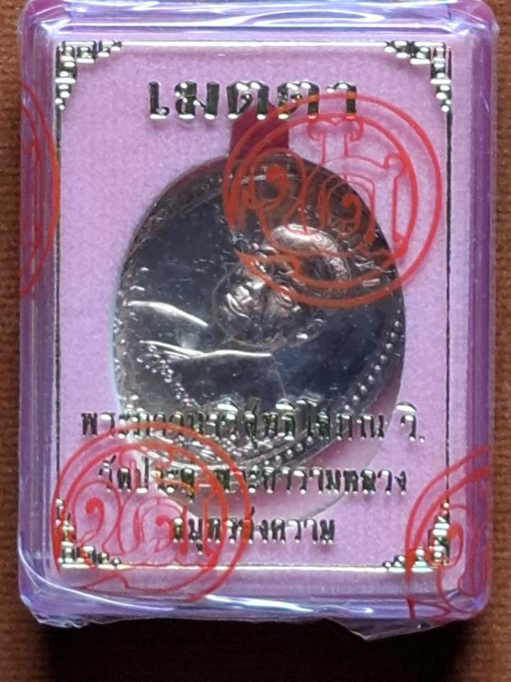 เหรียญเสมาหน้าแซยิด หูเชื่อมโบราณ เจริญพร ลาภมาไม่ขาด หลวงพ่ออิฏฐ์ วัดจุฬามณี เนื้อเงินลงยาแดง ลงยาจีวร เลข 7579 กล่องครบ |