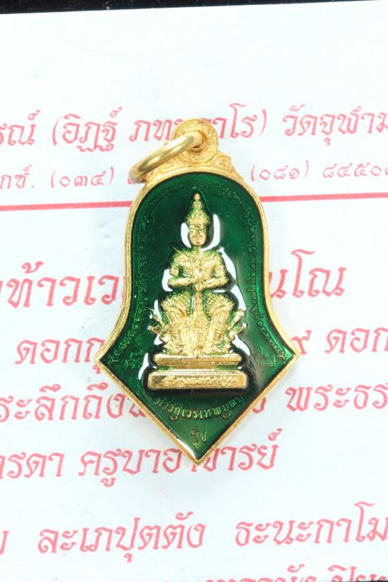 เหรียญท้าวเวสสุวรรณ พิมพ์เล็ก ปี2552 เนื้อเงิน เลี่ยมทอง บัตรสภาพสวย |
