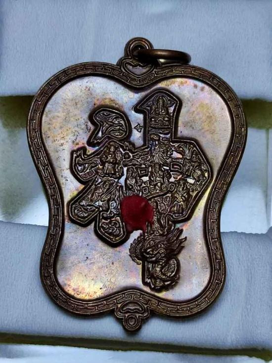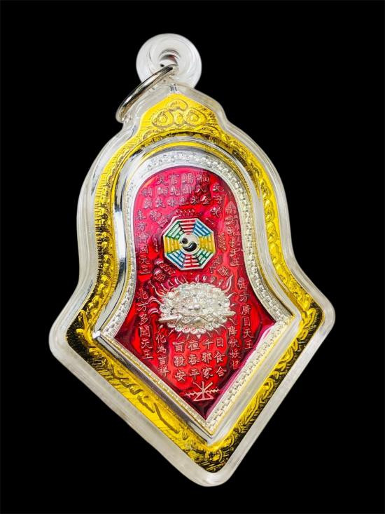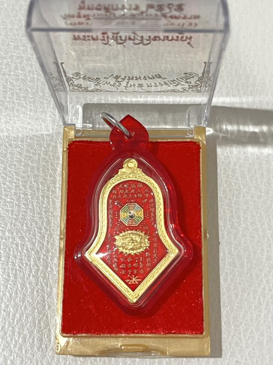เหรียญจำปีกันชง กะหลั่ยทองลงยาแดง พิมพ์ใหญ่ เลี่ยมพร้อมใช้ |