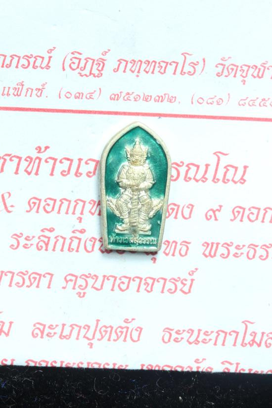 ** รับขวัญศิษย์ รุ่นนิยม พิมพ์ใหญ่ วัดใจ พร้อมใบคาถารุ่นแรก หายากแล้ว **ท้าวเวสสุวรรณ ผงจำปี รุ่น.รับขวัญศิษย์ปี 62 เนื้อผงซาจูแดง ซองคาถาเดิมๆ //a1 |