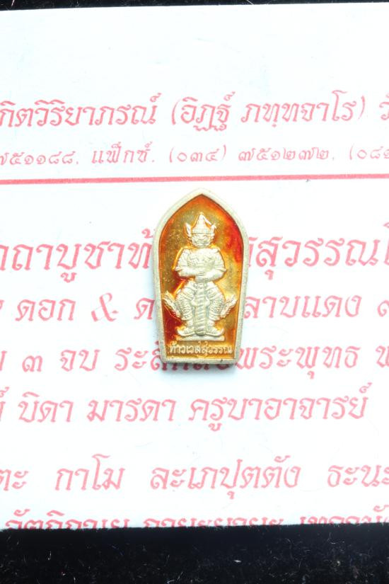 ** รับขวัญศิษย์ รุ่นนิยม พิมพ์ใหญ่ วัดใจ พร้อมใบคาถารุ่นแรก หายากแล้ว **ท้าวเวสสุวรรณ ผงจำปี รุ่น.รับขวัญศิษย์ปี 62 เนื้อผงซาจูแดง ซองคาถาเดิมๆ //a4 |