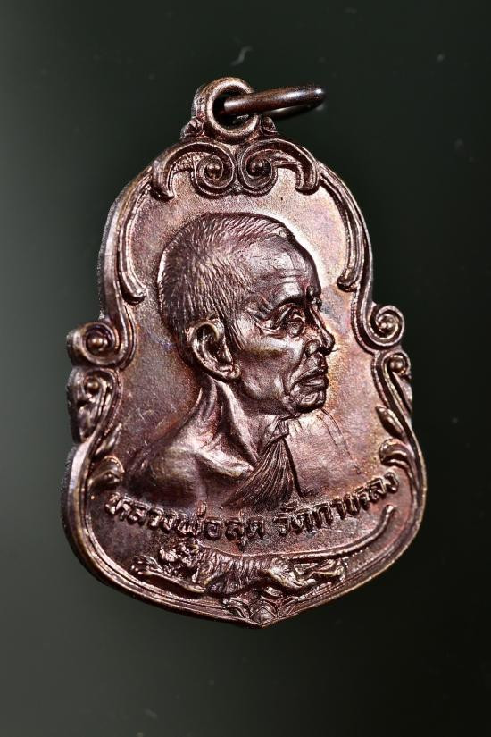 เหรียญฉลองอายุ 80 ปี หลวงพ่อสุด วัดกาหลง ทองแดง ปี 2525 |