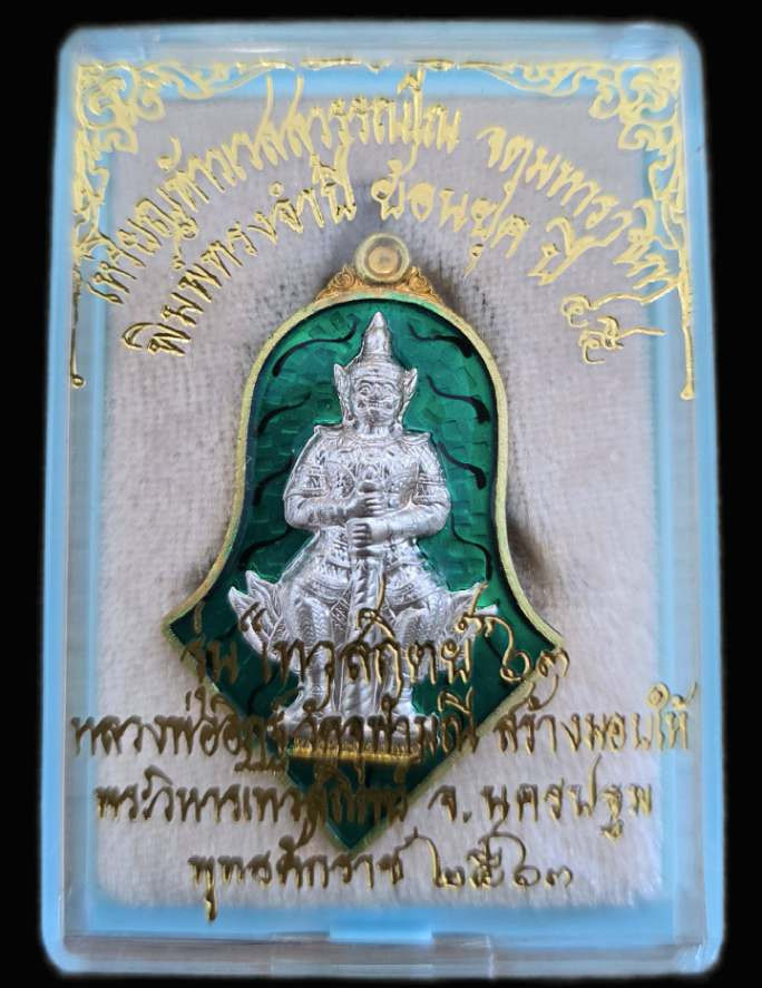 **กะไหล่เงินลงยา ราคาโคตรคุ้ม เคาะเดียว ปรกลงยา **ปรกใบมะขาม ท้าวเวสสุวรรณ หลวงพ่ออิฏฐ์ วัดจุฬามณี รุ่น 4 ปี2563 ///R16 |