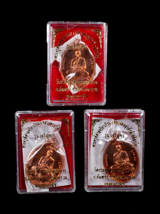 เคาะเดียว 3 เหรียญ เหรียญ ลูกท้อสวรรค์ รุ่นแรก ปี48 เนื้อทองแดง หลวงพ่ออิฐ วัดจุฬามณี พร้อมรอยจาร ทุกองค์ |