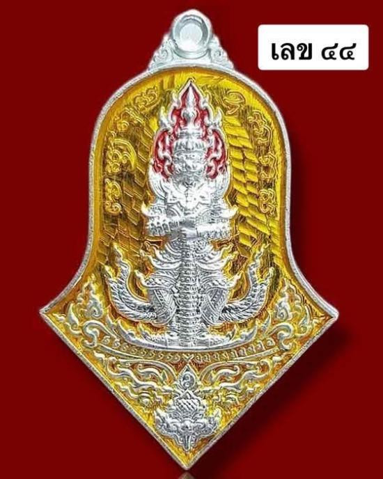 No.44 เหรียญท้าวเวสสุวรรณ รุ่น เทวาประทานทรัพย์สินเจริญดี หลวงพ่ออิฏฐ์ วัดจุฬามณี เนื้อเงินลงยาเหลือง |