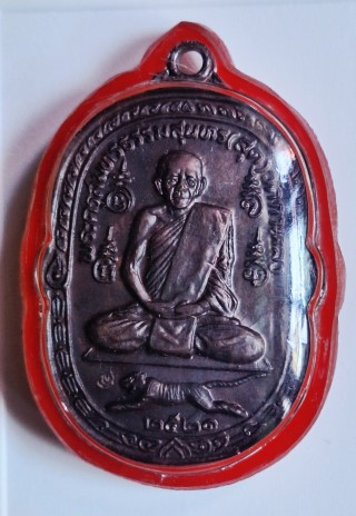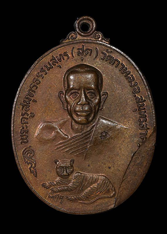 เหรียญหลวงพ่อสุด วัดกาหลง รุ่นเสือเผ่น พิมพ์เสือหางตรง เนื้อทองแดง ปี2521 จ.สมุทรสาคร พร้อมเลี่ยม (ไม่มีทองแล้วครับ) |