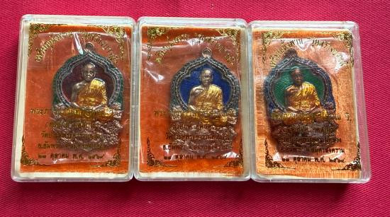 รอบเดียว 3 เหรียญ เหรียญเสมาหน้าแซยิดหูเชื่อมโบราณ หลวงพ่ออิฎฐ์ วัดจุฬามณี จ.ส มุทรสงคราม พ.ศ.2565 เนื้อทองแดงลมดำ ตอกโค๊ต ตอกเลข กล่องเดิม |