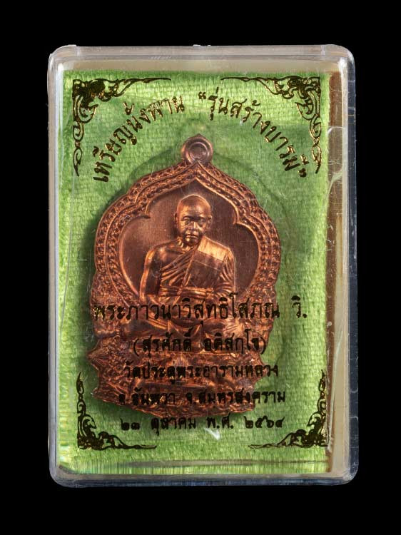 *****เหรียญนั่งพานหลวงพ่อมหาสุรศักดิ์ รุ่นสร้างบารมี ปี ๒๕๖๔ เนื้อสัตโลหะ ตอกโค้ตหมายเลข 19 สภาพสวยเดิมๆ+กล่องเดิมตามรูปครับ***** |