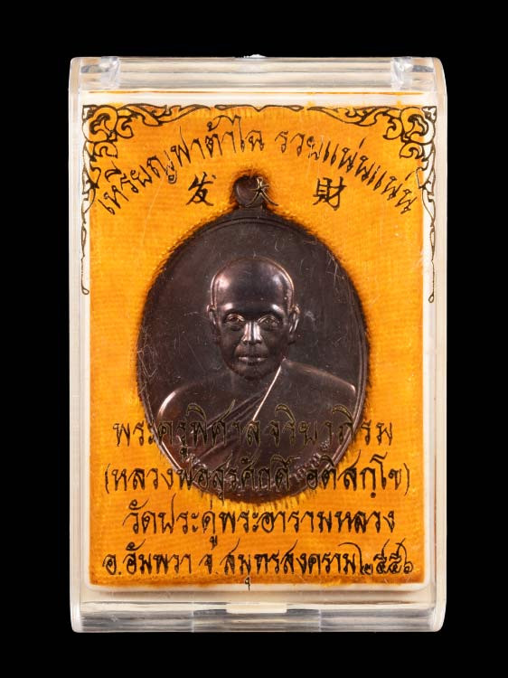 เหรียญหล่อเจ้าสัวอัมพวา หลวงพ่อพระมหาสุรศักดิ์ วัดประดู่ ปี 2559 เนื้อมหาชนวน ตอกเลข 850 |