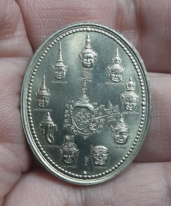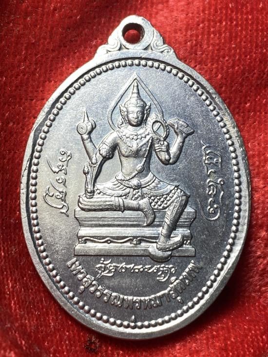 เหรียญท้าวเวสสุวรรณ พิมพ์เล็ก ปี2552 เนื้อเงิน เลี่ยมทอง บัตรสภาพสวย |