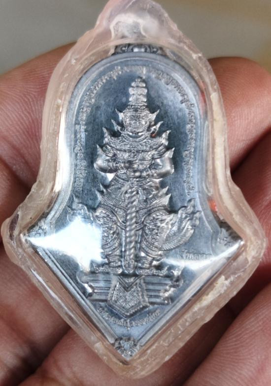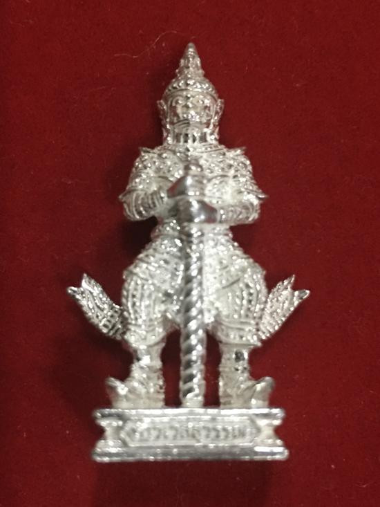 รูปหล่อองค์ท้าวเวสสุวรรณ รุ่นศรีรุ่งเรือง ลอยองค์ เนื้อเงิน ใต้ฐานมีจารหลวงพ่อ ปี 2553 วัดจุฬามณี |