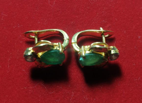 ต่างหูทองคำ แก้วมรกต +เพรชแท้ นน.4g |