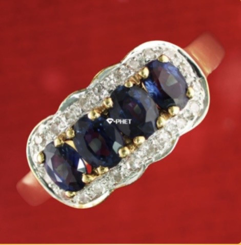แหวนไพลินล้อมเพชร มีใบเซอร์เพชร ตัวเรือนทอง 18K (75%) นน. 2.4 กรัม (เบอร์ 52) |