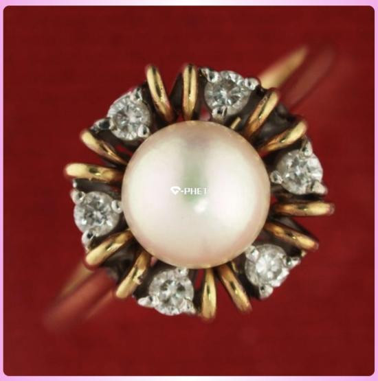 แหวนไข่มุกล้อมเพชรแท้ (ไข่มุกอะโกย่า/Akoya Pearl) สี Light Pink ตัวเรือน Gold 73% น้ำหนักรวม 3 กรัม size 49 *มีเซอร์G-Phet* |