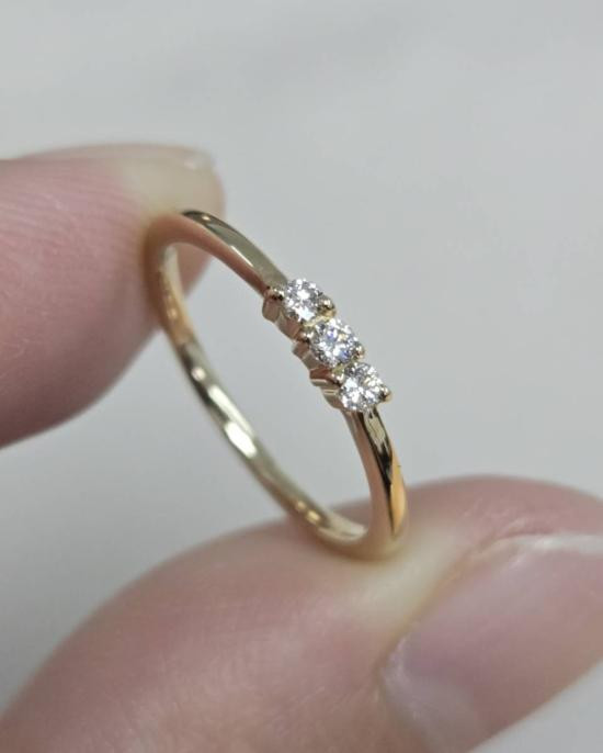 **ของใหม่** แหวนเพชรแถว 3 เม็ด / 9 ตังค์ ตัวเรือนทอง 9K (37.5%) นน. 1.1 กรัม เบอร์ 48 *มีเซอร์ Gphet |