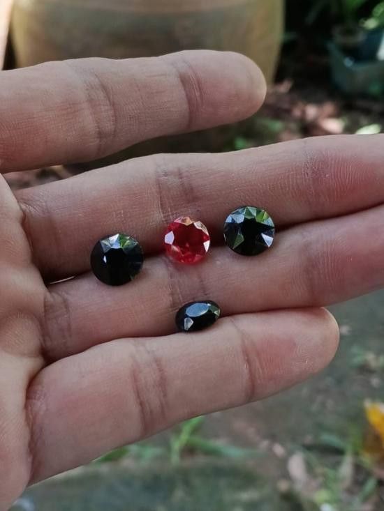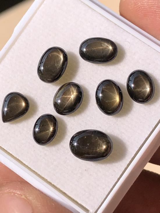 แบล็คสตาร์ บางกะจะ (สยาม) ( แบล็คแซฟไฟร์) 8 เม็ด น้ำหนักรวม 12.9 กะรัต ( ขนาด 1-3 กะรัต ) |