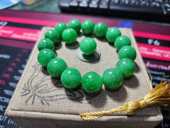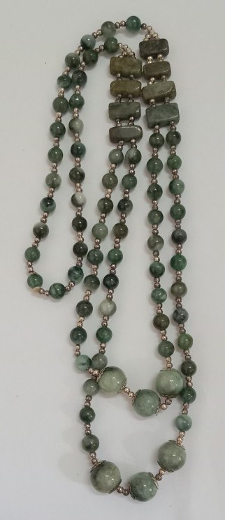 สร้อยหยกยาวกว่า 11นิ้ว เม็ดหยกเล็กร้อยด้ายแขวนพระมีน้ำหนักได้ |