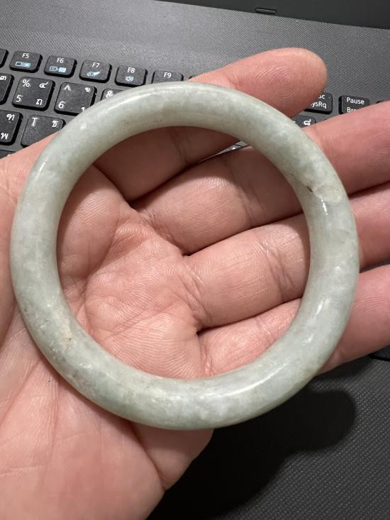 กำไลหยกแท้ ข้อมือผู้ชายใส่ สีขาวสวยออกนวลๆๆรับประกันหยกแท้กว้างประมาณ3.9 นิ้วตามไม้บรรทัด |