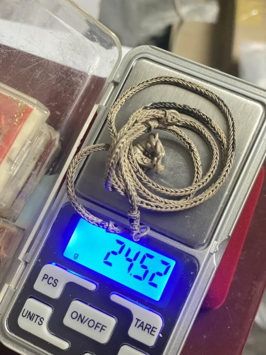 สร้อยเงิน ยาว 34cm หนัก 24.52 กรัม ...แขวนพระ 3องค์ +ก้ามปูแขวนพระ |