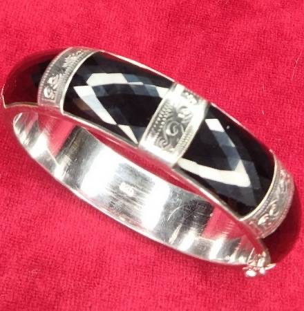 กำไลนิลแท้ของเมืองกาญจนบุรี ตัวเรือนเงิน 92.5 ชุบทองคำขาว |