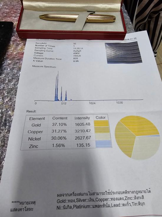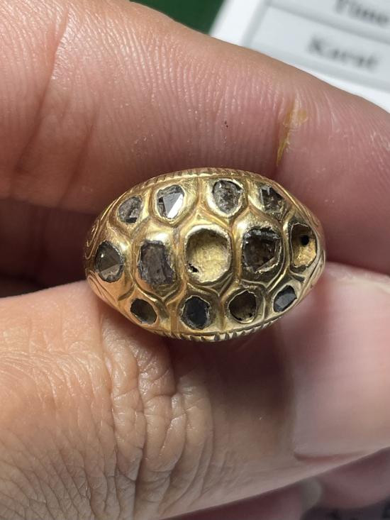 แหวนทองฝั่งเพชรโบราณ ยิงเปอร์เซ็นต์ได้ 77.49% หนัก 4.53 กรัม คับ |