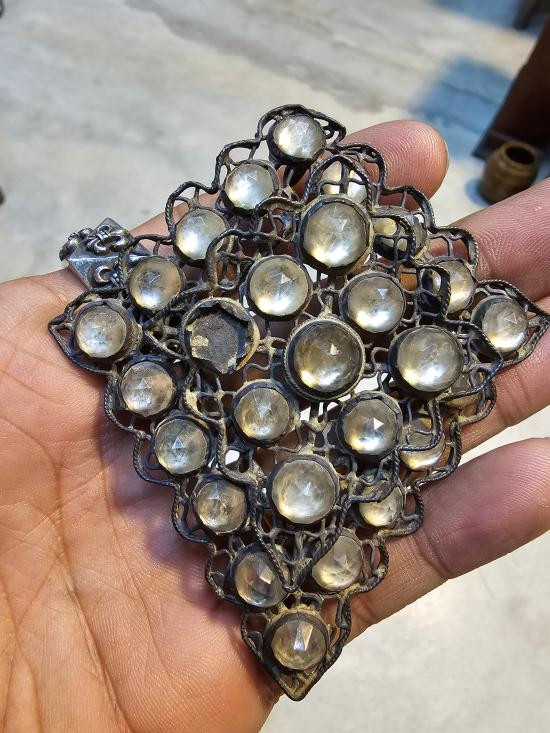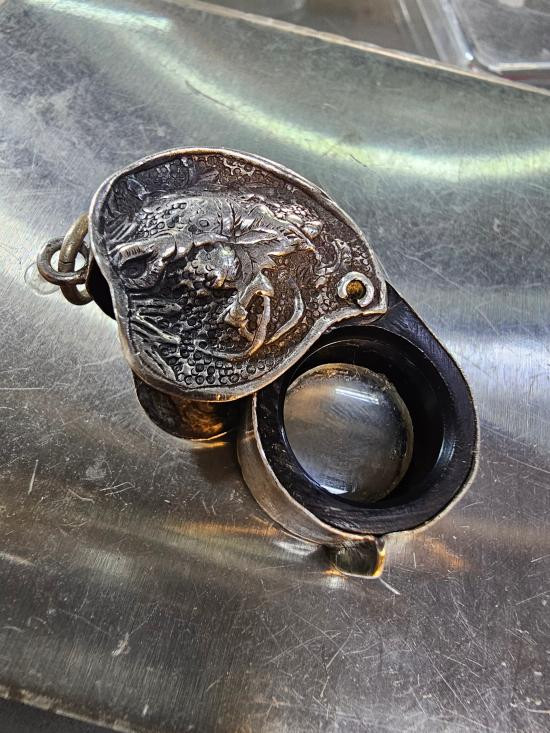กระดุม เนื้อเงิน ลงยาเก่าโบราณ ด้านหลังมีตอกภาษาอังกฤษ สภาพสวยสมบูรณ์ น้ำหนัก 4.52 กรัม |