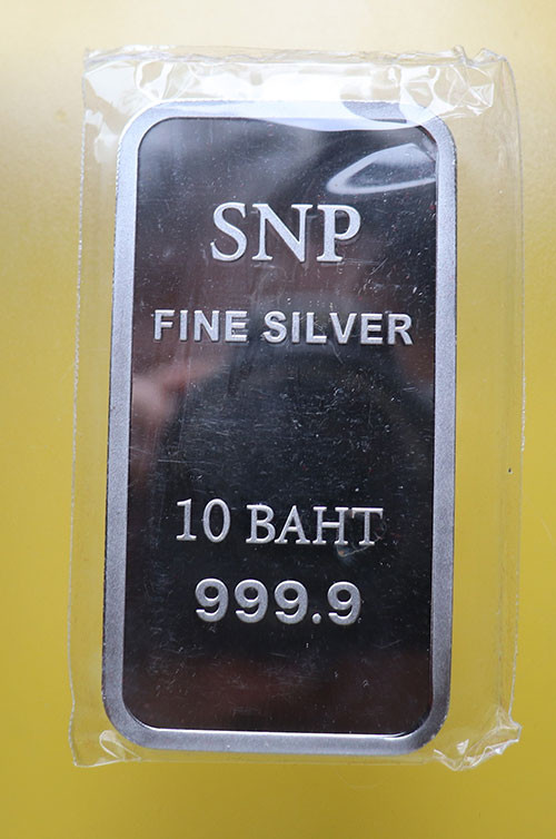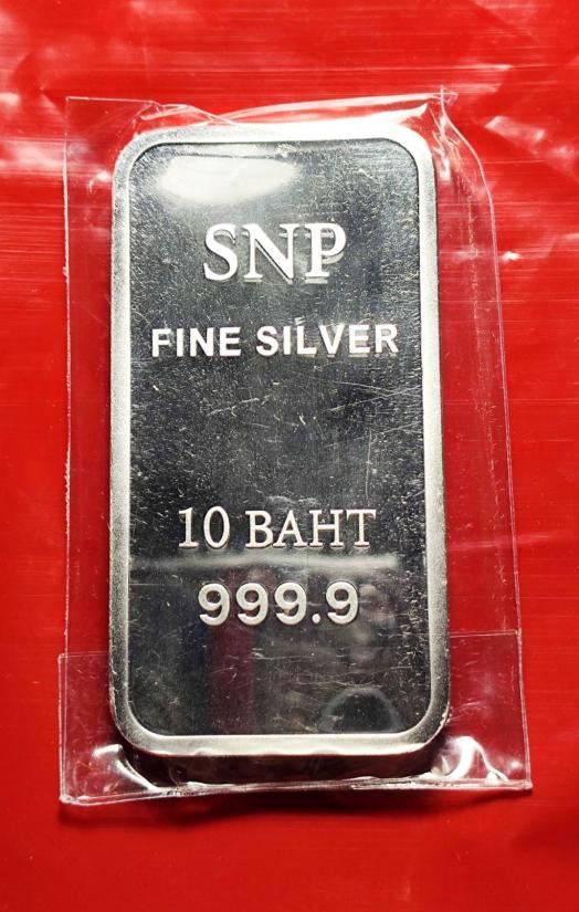 เงินแท่งบริสุทธิ์ 999.9% ( FINE SILVER 999.9% ) SNP ห้างทองแสงนภา พร้อมถุงผ้า+ใบรับประกัน ขนาด 1 บาท |