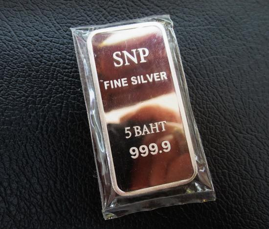 เงินแท่งบริสุทธิ์ 999.9% ขนาด 5 บาท หรือ FINE SILVER 999.9% น้ำหนัก 5 บาท น่าสะสมหรือเอาไปทำกำไรได้ครับ ราคายังไปได้อีกครับ |