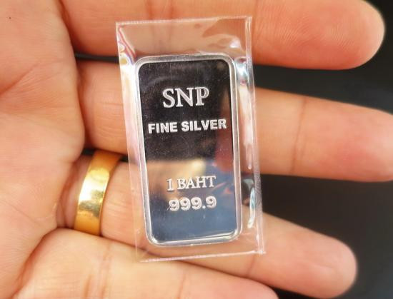 เงินแท่ง 1 บาท Fine Silver 999.9% แสงนภาโกลล์ SNP ยอดนิยม 31/1/2568 |