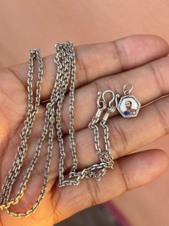 เคาะเดียวเเดง สร้อยเงิน ยาว33ซม. พร้อม จี้ ร.5 เลี่ยมเงิน น้ำหนักรวม15.67กรัม |