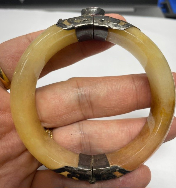 เคาะเดียว กำไลหยกจับเงิน ชำรุดตามภาพ |