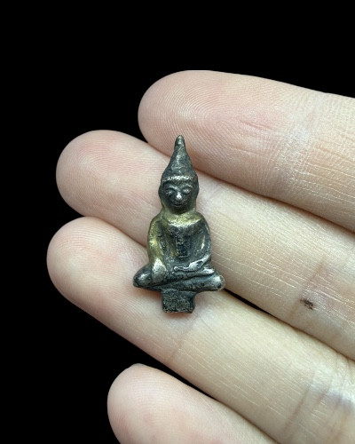 *350* พระเชียงรุ้งเนื้อสัมฤทธิ์แก่เงิน ขนาดเล็ก(ห้อยคอ) หล่อตัน สูง4.5ซม.**